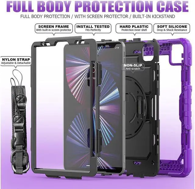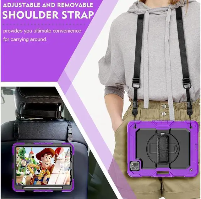 SHOULDER STRAP --- This iPad comes with Adjustable and Detachable Shoulder Strap. Let you carry your iPad Pro 3rd Generation on any occasion, such as traveling, car seats, office, and classroom. You can also take the shoulder strap off when you don't need it.