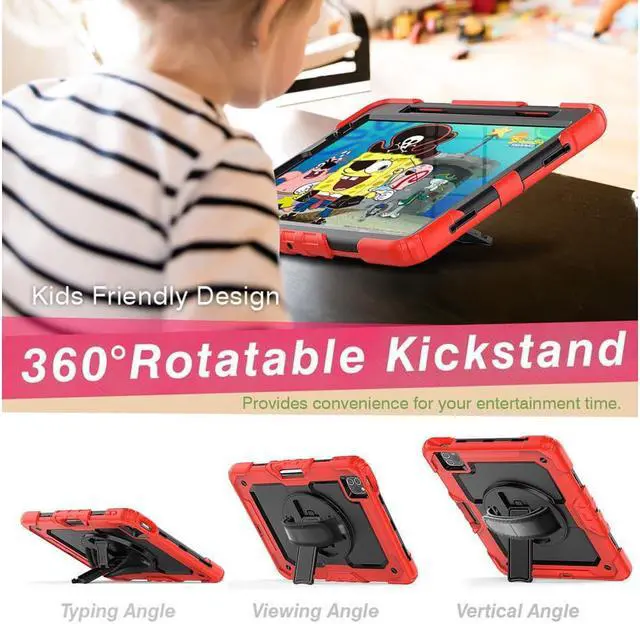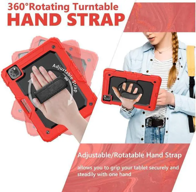 360 Rotating Kickstand & Hand Strap ---the built-in bracket of iPad Case is stable and firm, provide you more angles for hands-free watching a video/conferences/class. Hand Grip Strap can be adjusted for big and small hands, very suitable for children and adults.