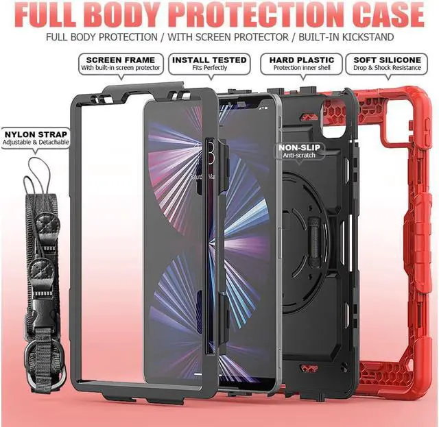 SHOULDER STRAP --- This iPad comes with Adjustable and Detachable Shoulder Strap. Let you carry your iPad Pro 3rd Generation on any occasion, such as traveling, car seats, office, and classroom. You can also take the shoulder strap off when you don't need it.