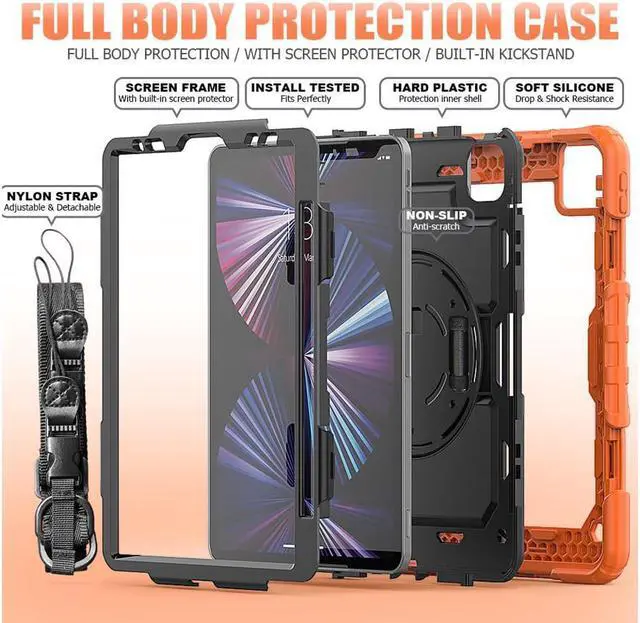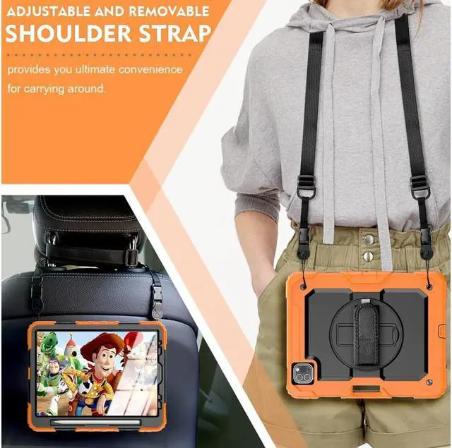 SHOULDER STRAP --- This iPad comes with Adjustable and Detachable Shoulder Strap. Let you carry your iPad Pro 3rd Generation on any occasion, such as traveling, car seats, office, and classroom. You can also take the shoulder strap off when you don't need it.