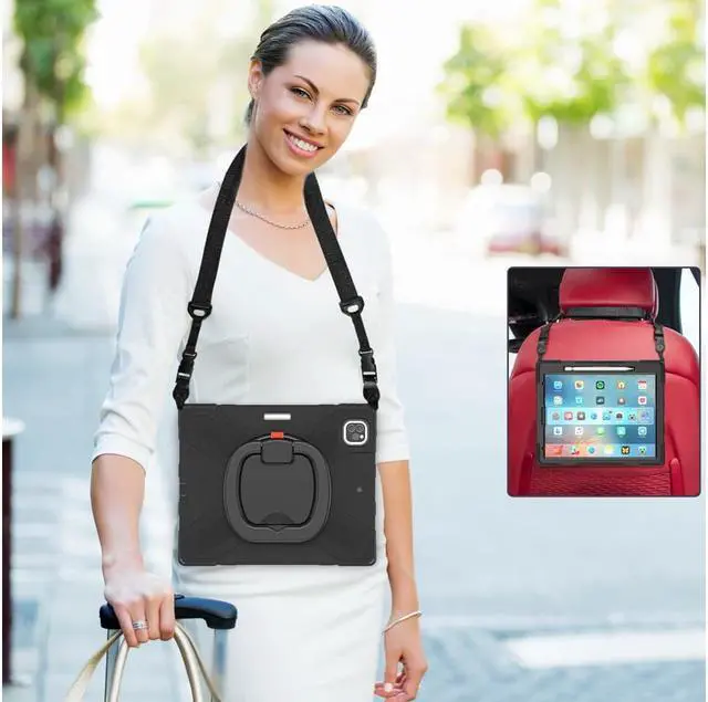 [Adjustable/Detachable Shoulder Strap] Attach strap to any two holes of iPad Pro 12.9 Case, portable carrying strap provides you ultimate convenience for carrying around; You can even mount it to car headrest for back seat hand-free viewing, ideal for working,studying and travelling.
