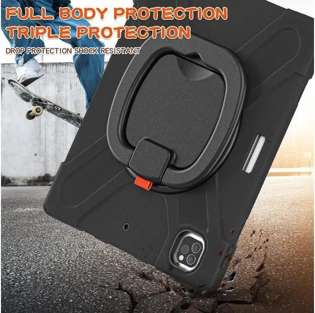 iPad Pro 12.9 inch Case 2022 2021 6th 5th Generation, Shockproof Rugged Drop Protection Cover with Pencil Holder and Rotating Kickstand Hand Strap / Shoulder Strap