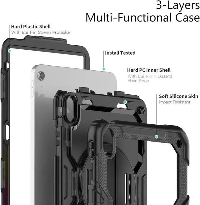 MILITARY GRADE DROP TESTED MIL-810G: This shockproof protective three-layer iPad case is made from premium polycarbonate and anti-skidding anti-shock silicone shell bumper, passed the Military Grade Drop Tested: MIL-810G. Our industry leading rugged triple PC/rubber shell has been tested to withstand 1500+ drops, 4 feet height impact! Provide max protection for your Apple iPad!