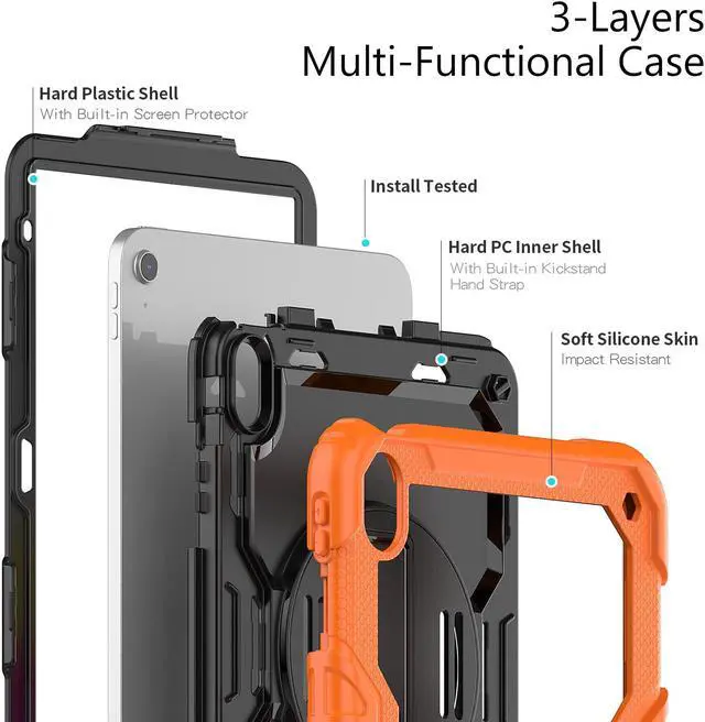 MILITARY GRADE DROP TESTED MIL-810G: This shockproof protective three-layer iPad case is made from premium polycarbonate and anti-skidding anti-shock silicone shell bumper, passed the Military Grade Drop Tested: MIL-810G. Our industry leading rugged triple PC/rubber shell has been tested to withstand 1500+ drops, 4 feet height impact! Provide max protection for your Apple iPad!