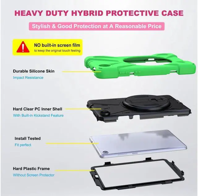CHILDPROOF, HEAVY DUTY, DROP PROOF, RUGGED TABLET PROTECTOR - Durable rubberized silicon body offers ultimate shockproof protection, hard plastic shell frame protects your tablet from being scratching. Innovative Design, thicken four corners, protect your tablet even if it falls from the second floor. The Tablet Case provides a perfect protection against accidental drops, scratches, dust, bumps and shock