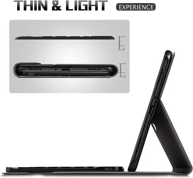 Featured with bright Tri-color backlight keyboard, 3 levels of brightness and 7 kinds of optional backlits makes your keyboard gorgeous and special, ensures the keys are sharp, bright and easy to read in dim light, more comfortable typing experience. Ultra-slim design adds maximum protection with minimal bulk (0.38 in). Magnetically detachable super slim 7mm and light weight bluetooth keyboard with 10M range.