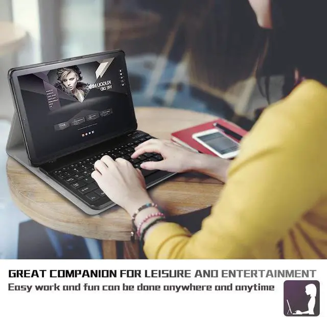 Durable PU leather cover and anti-slip rubber-lined interior provide full protection for your tablet. Soft flexible TPU back shell protect your tablet from shocks, drops and impacts. Support auto sleep/wake function by CASE ONLY mode. Adjustable stand securely holds your tablet in landscape mode.