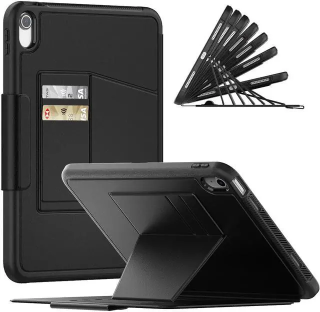 UNIQUE DESIGN: The Magnetic cover can be absorbed to fridge or iron surface, help free your hands. Easy Card holder helps holding your card Tightly and Securely. Without screen protector in order to remain original screen touch feeling.