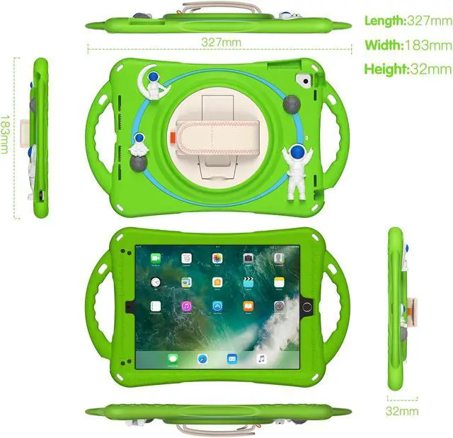 Compatibility: Cute Astronaut Kids Case for iPad 6th Generation 2018 (Model:A1893 , A1954 ), iPad 5th Generation 2017 (Model:A1822, A1823 ), iPad Air 2 (Model: A1566 A1567), iPad Air 1 (Model: A1474 A1475 A1476) and iPad Pro 9.7 inch 2016 (Model: A1673 A1674 A1675), not fit any other model.