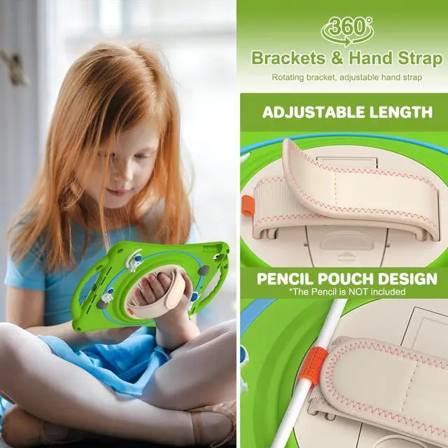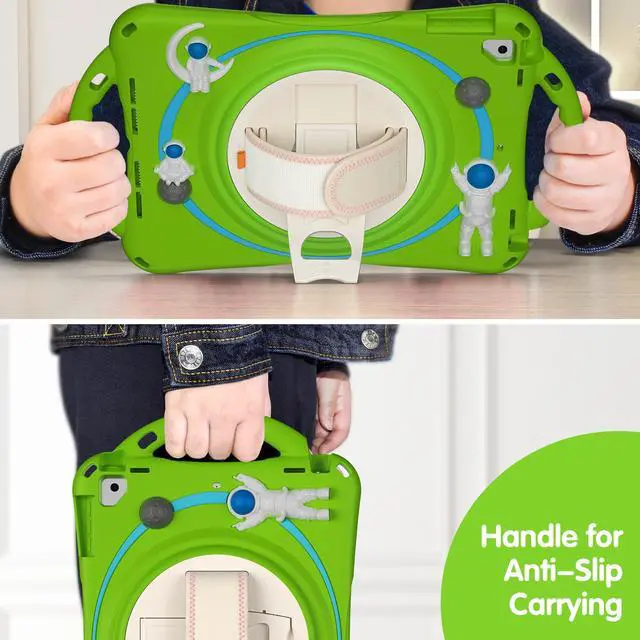 360° Swiveling Stand & Hand Strap: Built-in 360 degree rotating kickstand and adjustable hand strap provide a more flexible and convenient way to use your iPad , ideal for boys,girls,children.
