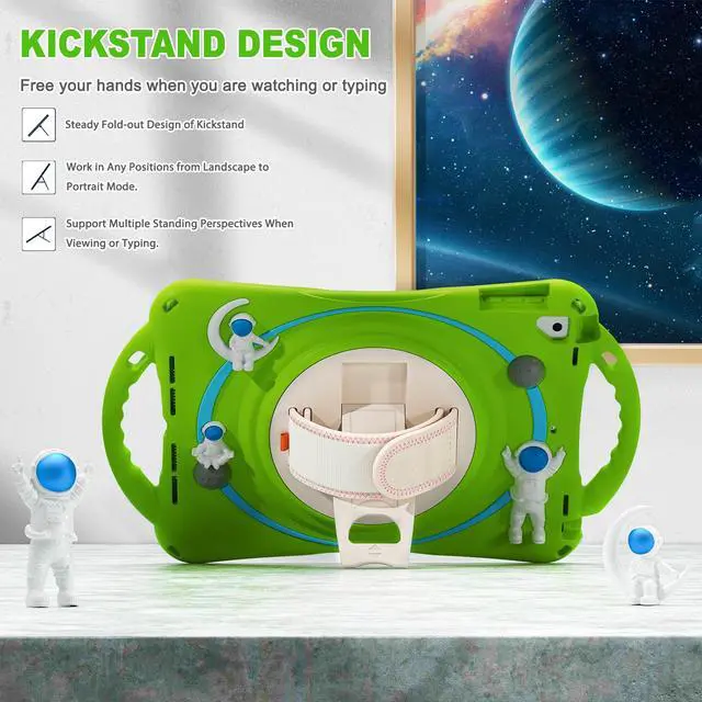 Full Body Protection: Made of non-toxic and eco-friendly shock absorbing rubber,our iPad Case offer a good protection from drop and shock whilst provide a good looking with our cute Astronaut patent design.