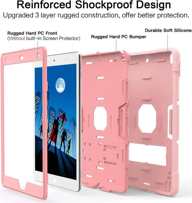 Shockproof Rugged Design: This case for iPad 9th generation kids made of durable hard PC+silicone, 3-layer full body protection structure, provide a perfect protection & anti-scratch. NOTE: This ipad 10.2 inch case WITHOUT built-in screen protector.