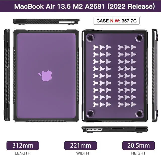 Designed ONLY to be compatible with MacBook Air 13.6 inch M2 Chip with Liquid Retina Display & Touch ID 2022 2023 Release (model: A2681 - MLXW3LL/A, MLXX3LL/A, MLXY3LL/A, MLY03LL/A, MLY13LL/A, MLY23LL/A, MLY33LL/A, MLY43LL/A). WARNING: This case is NOT compatible with other model laptops.