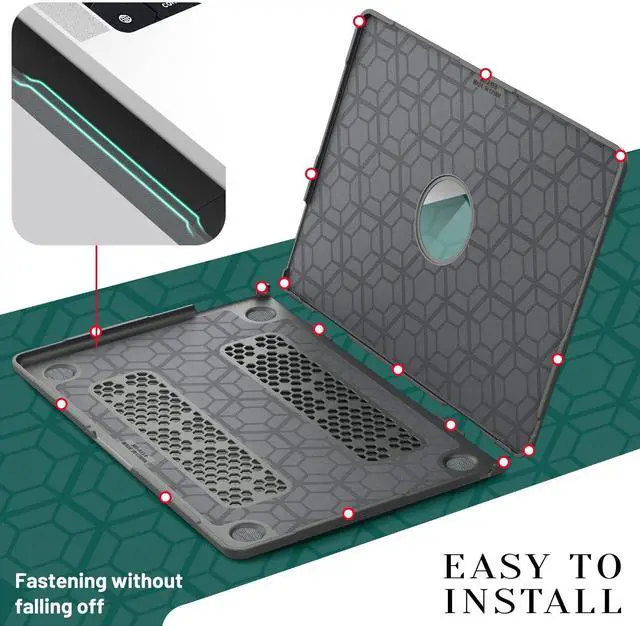 Heat Dissipation Designed for Performance: With its perforated bottom shell, this case enhances ventilation, ensuring your MacBook Air 13.6 stays cool during prolonged use or intensive tasks. This feature is essential for maintaining your device’s longevity and performance.