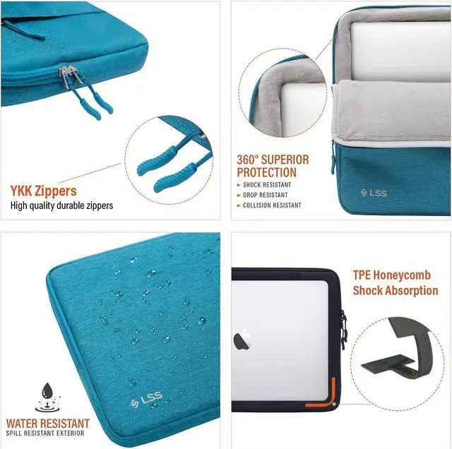 LSS Laptop Protective Sleeve Case for Men/Women with Accessory Pockets This Laptop Sleeve case features Corner Technology TPE Honeycomb Shock Absorption; that protects your device from bumps, scratches, knocks, and accidental dropping. Its slim and compact design enables you to carry your laptop hassle free everywhere.