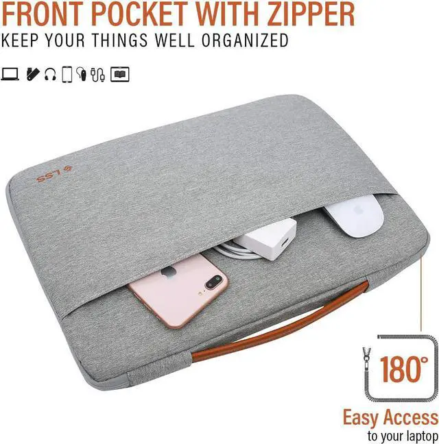 LSS Laptop Protective Sleeve Case for Men/Women with PU Leather Handle & Accessory Pockets
