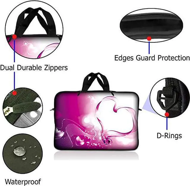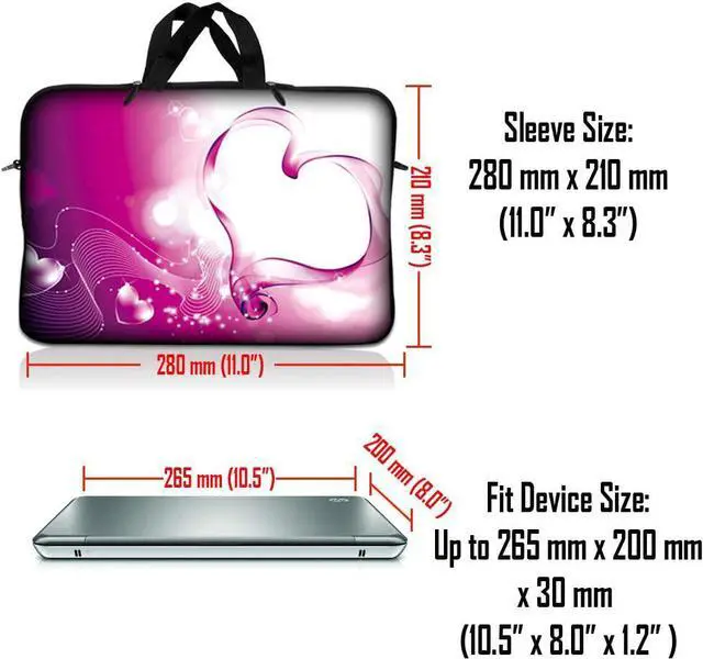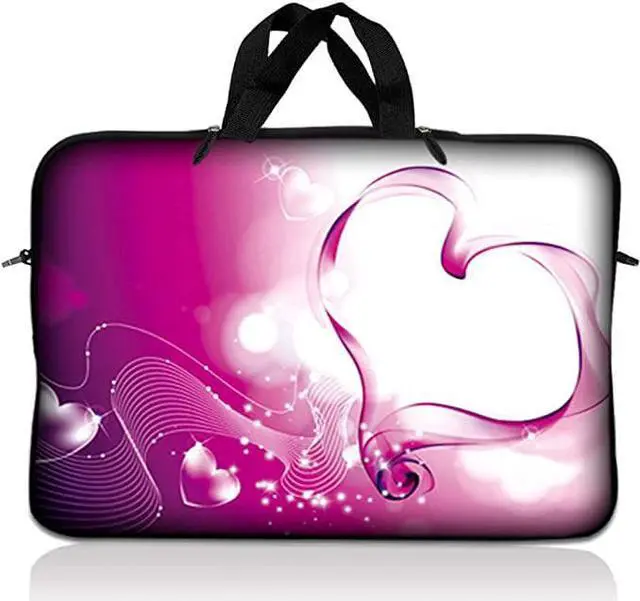 LSS 10.2 inch Laptop Sleeve Bag Carrying Case Pouch with Handle for 8" 8.9" 9" 10" 10.2" Apple Macbook, GW, Acer, Asus, Dell, Hp, Sony, Toshiba, Pink Heart