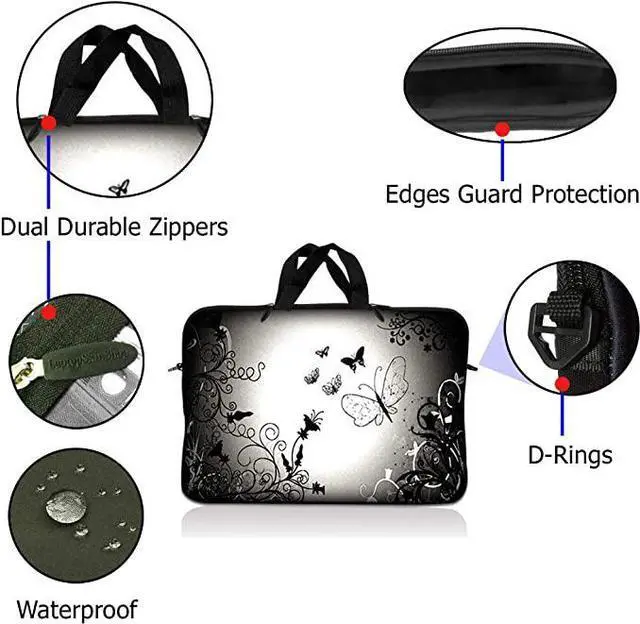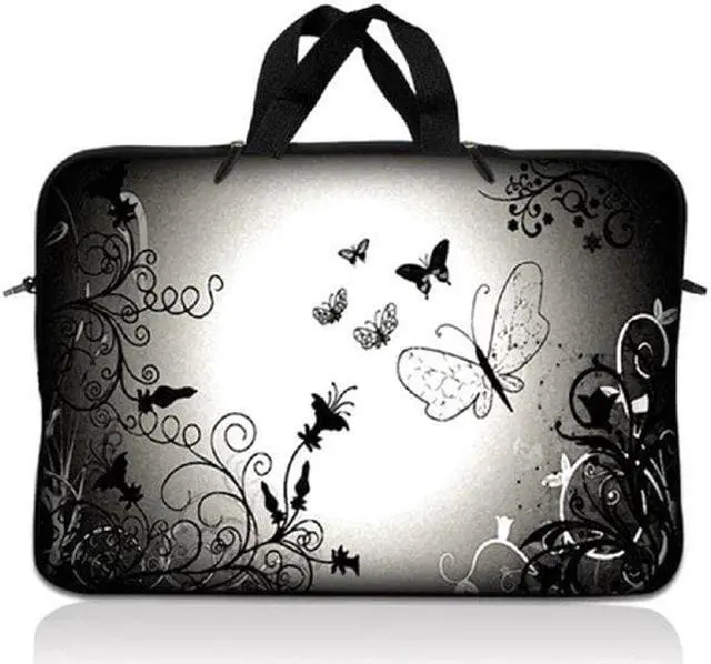 LSS 10.2 inch Laptop Sleeve Bag Carrying Case Pouch with Handle for 8" 8.9" 9" 10" 10.2" Apple Macbook, GW, Acer, Asus, Dell, Hp, Sony, Toshiba, Dark Contrast Fade Butterfly