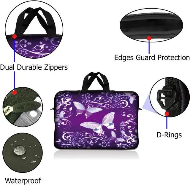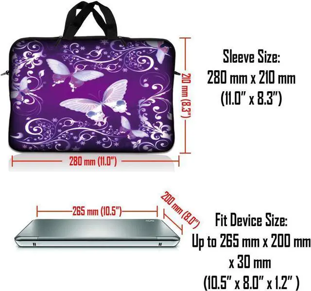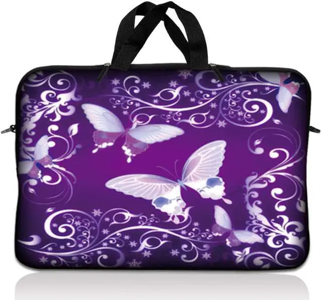 LSS 10.2 inch Laptop Sleeve Bag Carrying Case Pouch with Handle for 8" 8.9" 9" 10" 10.2" Apple Macbook, GW, Acer, Asus, Dell, Hp, Sony, Toshiba, Purple Butterfly