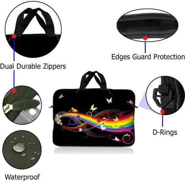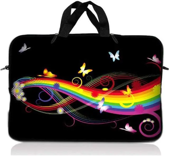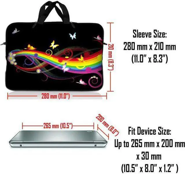 LSS 10.2 inch Laptop Sleeve Bag Carrying Case Pouch with Handle for 8" 8.9" 9" 10" 10.2" Apple Macbook, GW, Acer, Asus, Dell, Hp, Sony, Toshiba, Rainbow Butterfly