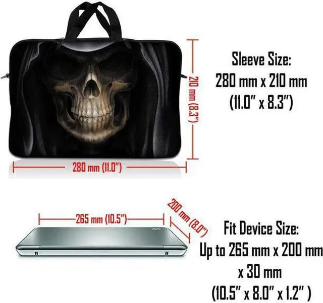 LSS 10.2 inch Laptop Sleeve Bag Carrying Case Pouch with Handle for 8" 8.9" 9" 10" 10.2" Apple Macbook, GW, Acer, Asus, Dell, Hp, Sony, Toshiba, Hooded Dark Lord Skull