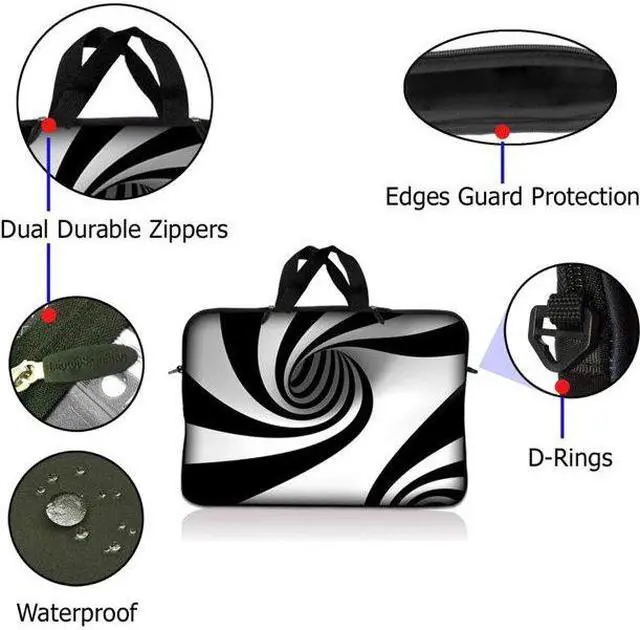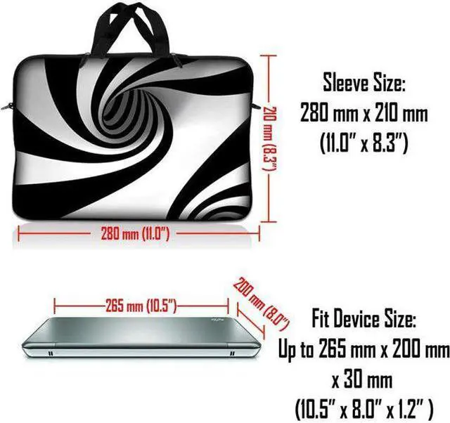 LSS 10.2 inch Laptop Sleeve Bag Carrying Case Pouch with Handle for 8" 8.9" 9" 10" 10.2" Apple Macbook, GW, Acer, Asus, Dell, Hp, Sony, Toshiba, Tornado White and Black Swirl