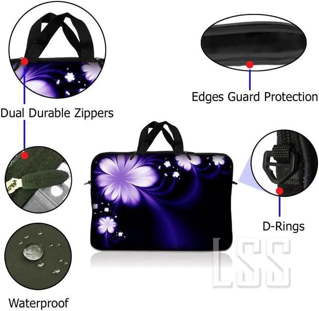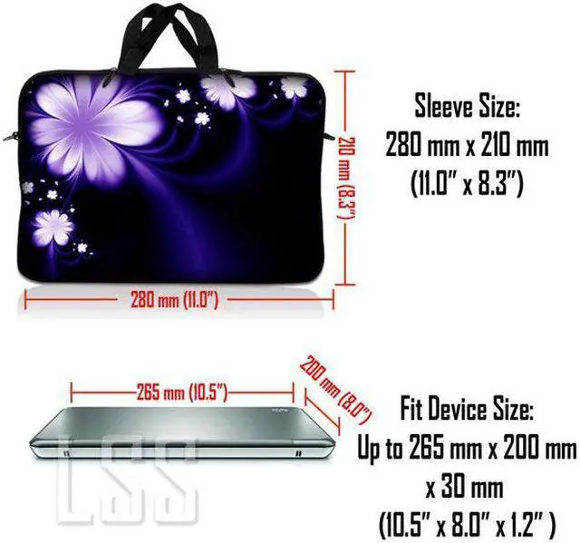 LSS 10.2 inch Laptop Sleeve Bag Carrying Case Pouch with Handle for 8" 8.9" 9" 10" 10.2" Apple Macbook, GW, Acer, Asus, Dell, Hp, Sony, Toshiba, Purple Flower Floral