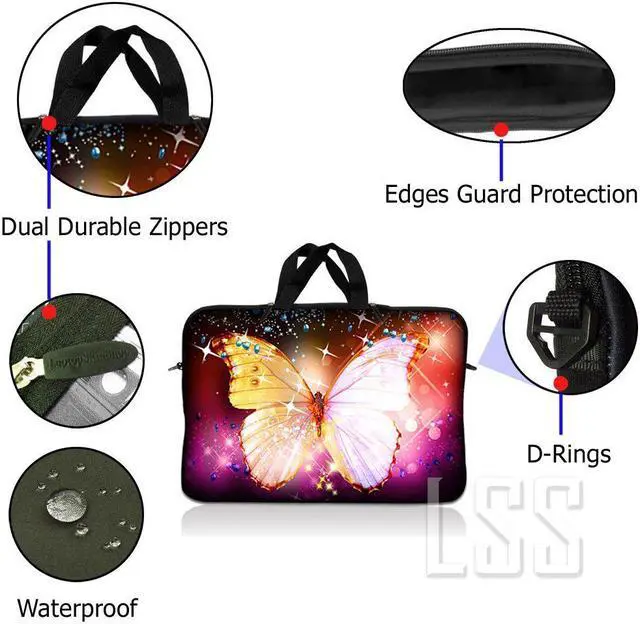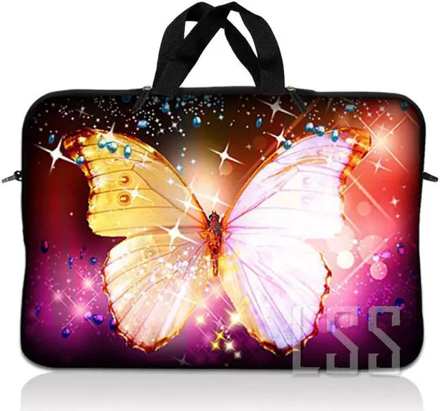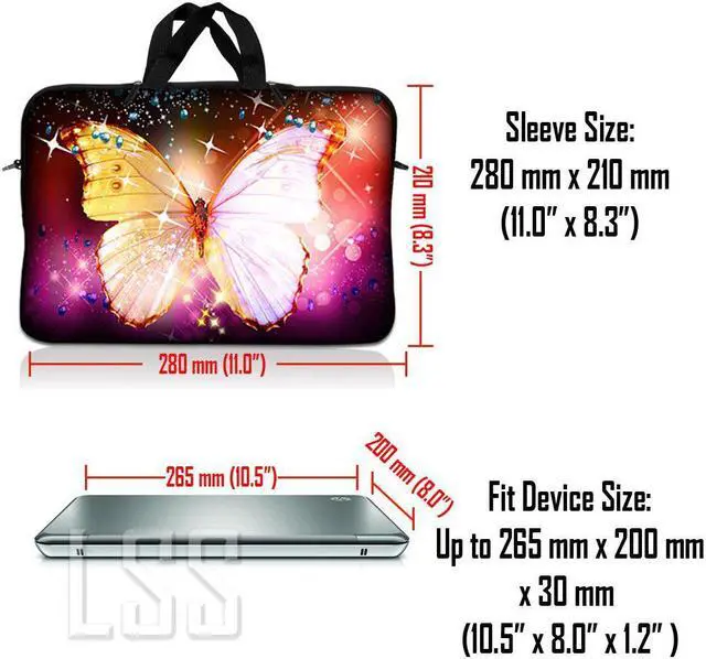 LSS 10.2 inch Laptop Sleeve Bag Carrying Case Pouch with Handle for 8" 8.9" 9" 10" 10.2" Apple Macbook, GW, Acer, Asus, Dell, Hp, Sony, Toshiba, Sparkling Butterfly