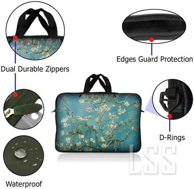 LSS 10.2 inch Laptop Sleeve Bag Carrying Case Pouch with Handle for 8" 8.9" 9" 10" 10.2" Apple Macbook, GW, Acer, Asus, Dell, Hp, Sony, Toshiba, Almond Trees