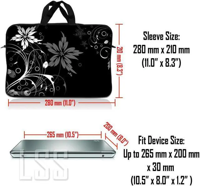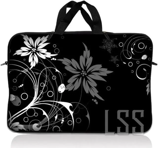 LSS 10.2 inch Laptop Sleeve Bag Carrying Case Pouch with Handle for 8" 8.9" 9" 10" 10.2" Apple Macbook, GW, Acer, Asus, Dell, Hp, Sony, Toshiba, Black and White Floral