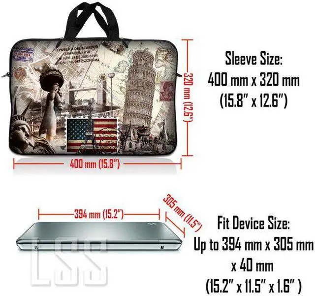 LSS 15.6 inch Laptop Sleeve Bag Carrying Case Pouch with Handle for 14" 15" 15.4" 15.6" Apple Macbook, GW, Acer, Asus, Dell, Hp, Sony, Toshiba, World Landmarks