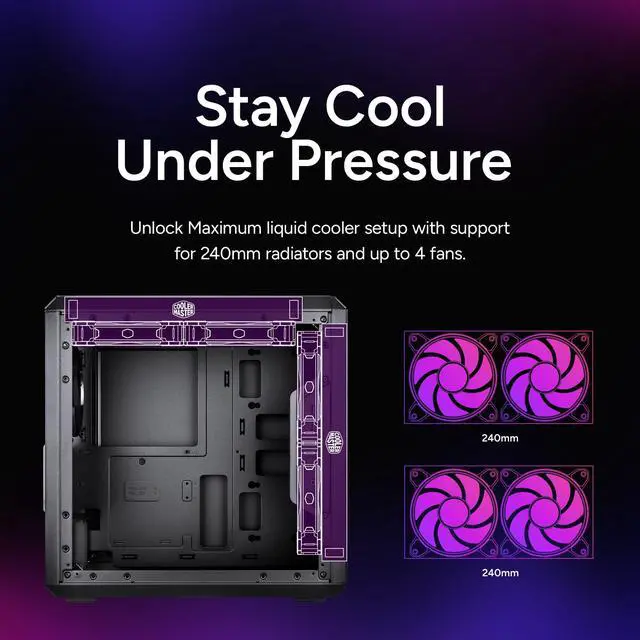 Versatile Cooling: Maximize cooling performance with a 240mm liquid cooler and 5 fans.