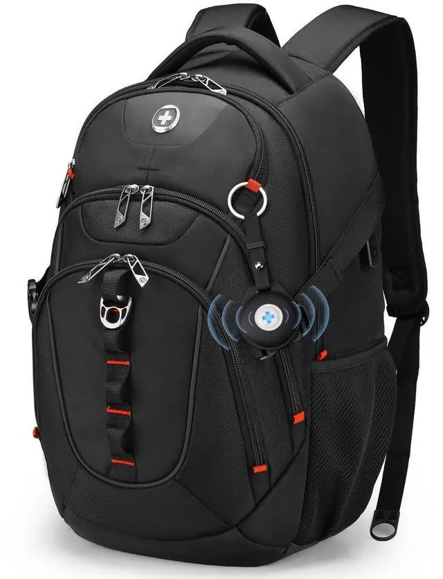 • Multiple Pockets: This computer backpack features a multi-layered storage system including 1 front and 2 side quick-access pockets for on-the-go items. This bookbag also comes with a luggage strap, letting you attach it to suitcases for one-handed pulling during travel