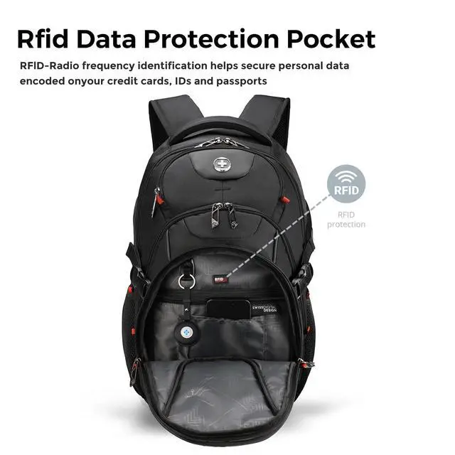 • SAFEGUARD YOUR PRIVACY WITH AN INTEGRATED RFID PROTECTION POCKET: Travel without worries. The RFID protection compartment protects your personal data from being accessed by RFID scanners (e.g. credit cards, passports and drivers licenses)