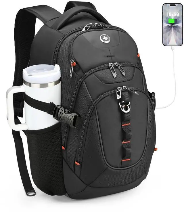 Design Laptop Backpack with USB Charging Port, Travel Backpack Fits 15.6 inches Computer, 31L College School Backpack for Men, Black | SD803-01