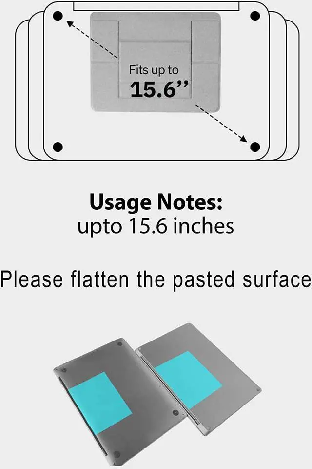 - [Convenient, Secure Workstation] Special removable adhesive means this laptop stand conveniently attaches and detaches from your laptop without leaving a single mark or scratch, reattaching again and again with the same strength, effectiveness and sensitivity. The stand is compatible with a wide range of laptops up to 15.7 ” - including MacBook Air and Pro.