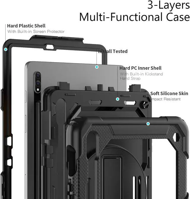 • 3-Layer Full Protection: Integrated front cover with built-in screen protector prevents scratches without sacrificing sensitivity or visibility. Advanced 3 in 1 construction with premium hard polycarbonate and impact resistant silicone material offers comprehensive protection for your tablet