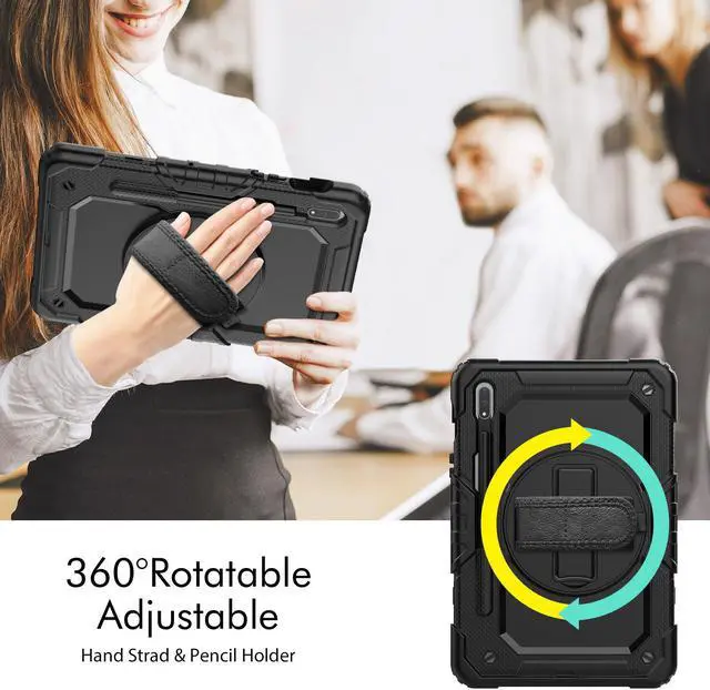 • 360° Rotatable Kickstand & Hand Strap: 360 degree rotatable kickstand offers multiple angles for viewing, typing and reading. Ergonomic and adjustable back handle allows you to grip your tablet securely and steadily with one hand, worry-free from dropping it