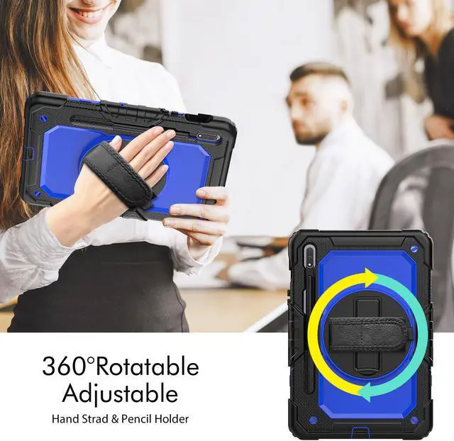 360° Rotatable Kickstand & Hand Strap: 360 degree rotatable kickstand offers multiple angles for viewing, typing and reading. Ergonomic and adjustable back handle allows you to grip your tablet securely and steadily with one hand, worry-free from dropping it
