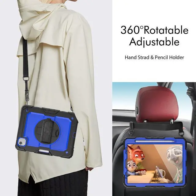 When you are traveling outdoors you can carry your tablet like a backpack. Additionally, it could hang wherever you want, even hanging behind the head rest of car seat.
