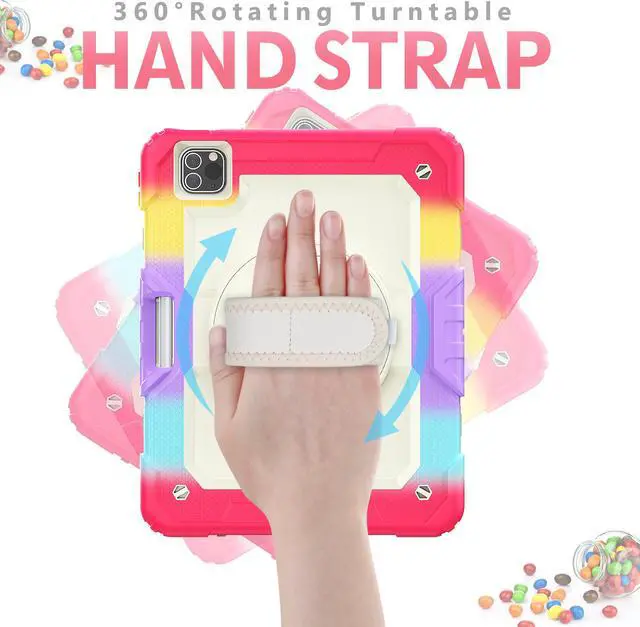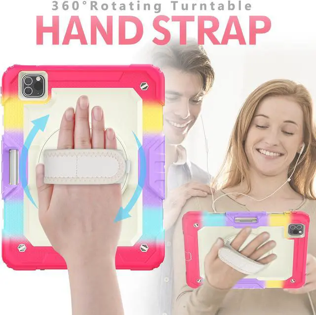 [Hand /Shoulder Strap] The back turntable built-in a hand strap, when you put your hand into the strap, you can firmly grasp the center of gravity of your 11 inch iPad Pro. Additional adjustable shoulder strap up to 49 inches ,it can be attached to the case for carrying your device.