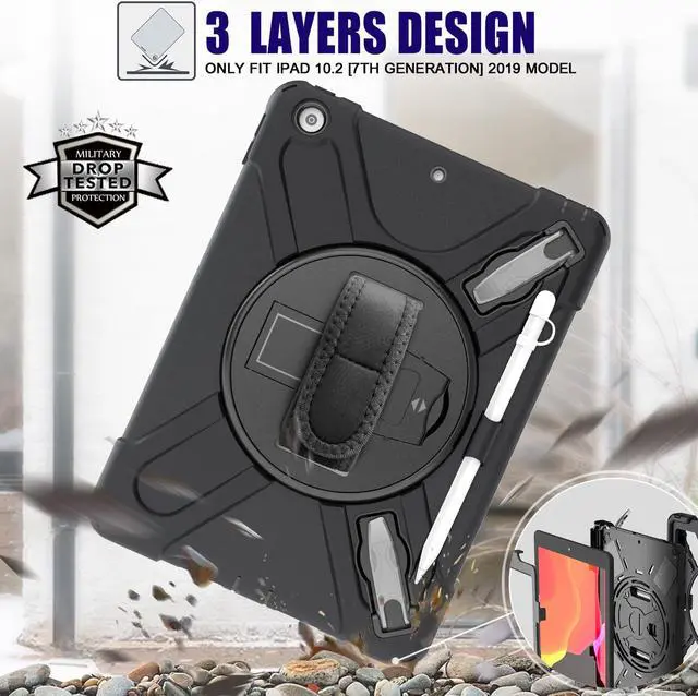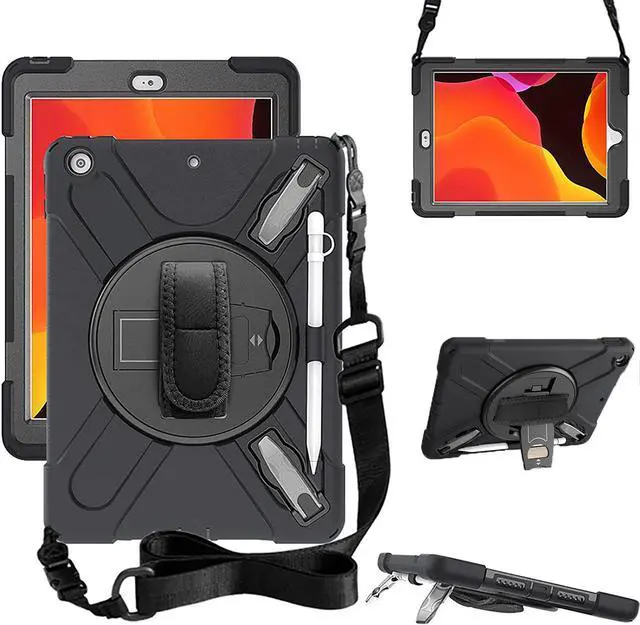 BONAEVER For iPad 9th 8th 7th Generation 10.2 Case with Pencil Holder Stand and Strap Shoulder Strap Shockproof Cover for iPad 10.2 inch 2021 2020 2019