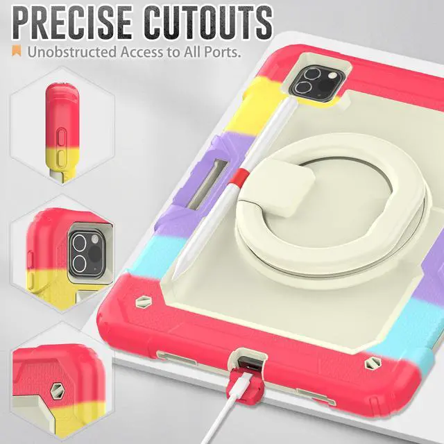 Presice Cutouts & with Pencil Holder: All ports, buttons, speakers and microphone have precise cut-outs for easy access. Form fit feature protects back and sides from scratches, dirt and bumps; There is a pencil holder on the edge of the hand strap, if you frequently use stylus to write, this protection case will provide you with convenience. (ATTENTION: The Pen is NOT included !); Supports Apple Pencil 2 wireless charging and pair