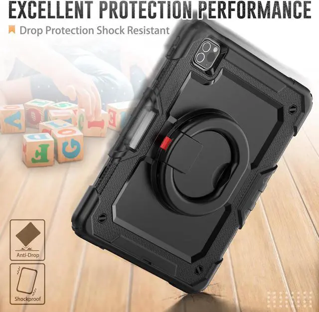 360° Rotatable Kickstand & Hand Strap: 360 degree rotatable kickstand offers multiple angles for viewing, typing and reading. Ergonomic and adjustable back handle allows you to grip your tablet securely and steadily with one hand, worry-free from dropping it