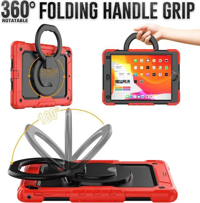 360° Rotatable Kickstand & Hand Strap: 360 degree rotatable kickstand offers multiple angles for viewing, typing and reading. Ergonomic and adjustable back handle allows you to grip your tablet securely and steadily with one hand, worry-free from dropping it