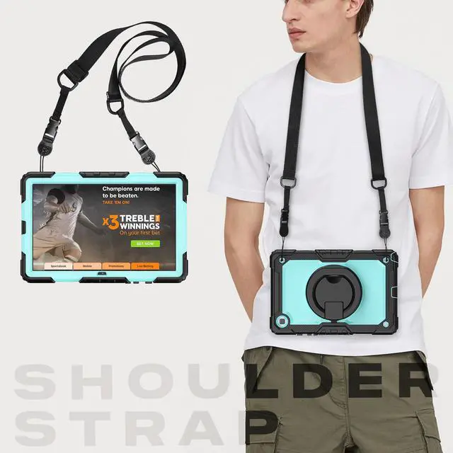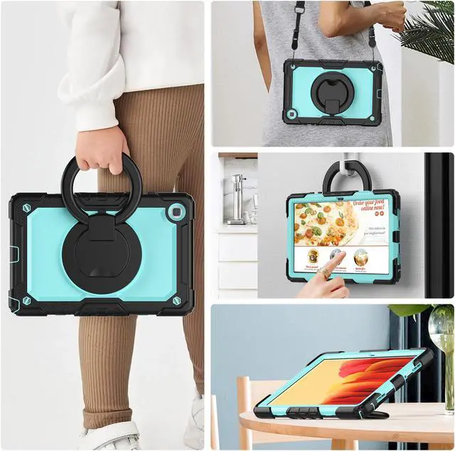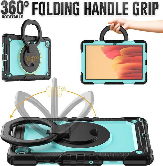 360° Rotatable Kickstand & Hand Strap: 360 degree rotatable kickstand offers multiple angles for viewing, typing and reading. Ergonomic and adjustable back handle allows you to grip your tablet securely and steadily with one hand, worry-free from dropping it