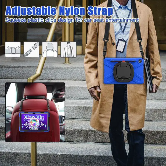 Adjustable & Detachable Carrying Strap: According to any need, remove the shoulder strap or the length can be easily adjustable. It also features displaying your tab m10 plus 10.6 inch tablet behind car head rest for entertainment for kids.