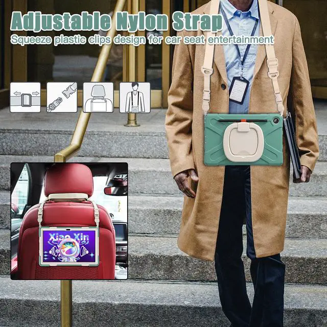 Adjustable & Detachable Carrying Strap: According to any need, remove the shoulder strap or the length can be easily adjustable. It also features displaying your tab m10 plus 10.6 inch tablet behind car head rest for entertainment for kids.