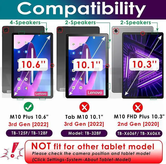Compatibility: Only Fit for Lenovo Tab M10 Plus Case 10.6 inch 2022 3rd Gen Model TB-125F / TB-128F. NOT compatible with other tablet. Please check the model number before purchase.