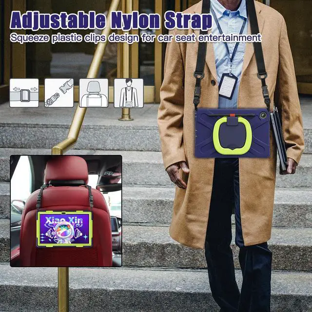 Adjustable & Detachable Carrying Strap: According to any need, remove the shoulder strap or the length can be easily adjustable. It also features displaying your tab m10 plus 10.6 inch tablet behind car head rest for entertainment for kids.